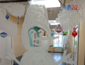 В детской поликлинике Калуги создали новогоднюю атмосферу сказки с помощью украшений и рисунков на окнах